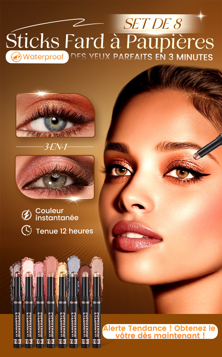 ✨PLUS DE 50 000 UNITÉS VENDUES ! 🎁8 couleurs de fards à paupières pailletés en stick, waterproof, longue tenue et multi-usage