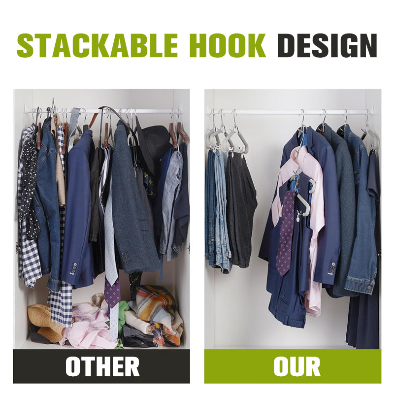 CONCEPTION DE CROCHET EMPILABLE – Le crochet innovant vous permet d'empiler plusieurs cintres, optimisant ainsi l'espace de votre placard tout en gardant les vêtements organisés et facilement accessibles. Parfait pour les petits espaces.