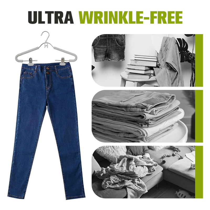 CLIPS MULTIFONCTIONNELS – Chaque cintre comporte deux clips, parfaits pour maintenir des jupes, des pantalons, des shorts ou des accessoires, offrant une prise sûre sans endommager vos vêtements.
