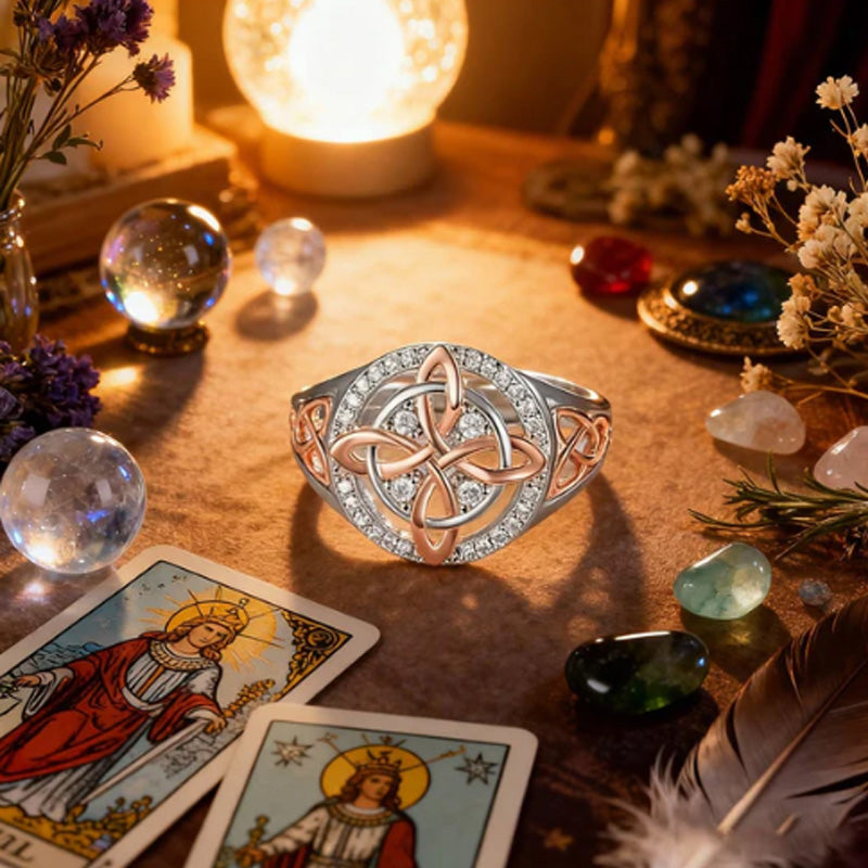 1 x Bague Élégante Bicolore à Nœud Celtique Ornée de Zircons